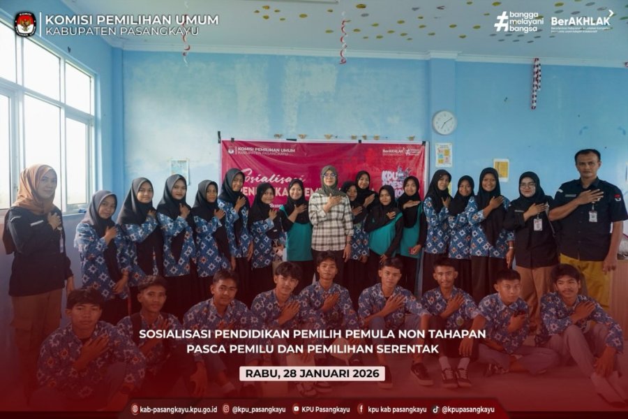 Pasangkayu — Komisi Pemilihan Umum (KPU) Kabupaten Pasangkayu terus berkomitmen meningkatkan kualitas demokrasi melalui pendidikan politik bagi generasi muda. Pasca pelaksanaan Pemilu dan Pemilihan Serentak, KPU Kabupaten Pasangkayu melaksanakan kegiatan sosialisasi pendidikan pemilih pemula di Madrasah Aliyah Negeri (MAN) 1 Pasangkayu, Rabu, 28 Januari 2026. Kegiatan ini menyasar para siswa-siswi MAN 1 Pasangkayu yang merupakan pemilih pemula, dengan tujuan memberikan pemahaman mendasar tentang pentingnya partisipasi politik, khususnya dalam pelaksanaan pemilu dan pemilihan kepala daerah. Sosialisasi ini juga menjadi bagian dari evaluasi dan refleksi pasca pemilu agar generasi muda memiliki kesadaran demokrasi yang lebih baik ke depan. Dalam penyampaiannya, Anggota KPU Kabupaten Pasangkayu Divisi Sosdiklih Parmas, Nurlina, menjelaskan peran strategis pemilih pemula dalam menentukan arah pembangunan daerah dan bangsa. Selain itu, para peserta juga dibekali pengetahuan mengenai tahapan pemilu, hak dan kewajiban pemilih, serta pentingnya menjaga netralitas dan menolak praktik politik uang. Antusiasme siswa terlihat dari keaktifan mereka dalam sesi diskusi dan tanya jawab. Berbagai pertanyaan seputar teknis pemungutan suara hingga peran KPU dalam penyelenggaraan pemilu disampaikan secara terbuka, mencerminkan tingginya rasa ingin tahu para pemilih muda terhadap proses demokrasi. KPU Kabupaten Pasangkayu berharap melalui kegiatan sosialisasi ini, para pemilih pemula dapat menjadi pemilih yang cerdas, berintegritas, dan bertanggung jawab. Dengan demikian, partisipasi politik generasi muda di Kabupaten Pasangkayu diharapkan semakin meningkat pada pemilu dan pemilihan yang akan datang. ....