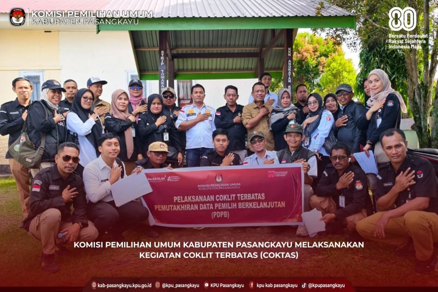 Pasangkayu, 20 Agustus 2025 - Komisi Pemilihan Umum Kabupaten Pasangkayu melaksanakan kegiatan Coklit Terbatas (Coktas) sebagai bagian dari upaya Pemutakhiran Data Pemilih Berkelanjutan (PDPB) pasca Pemilu dan Pemilihan Serentak Tahun 2024.